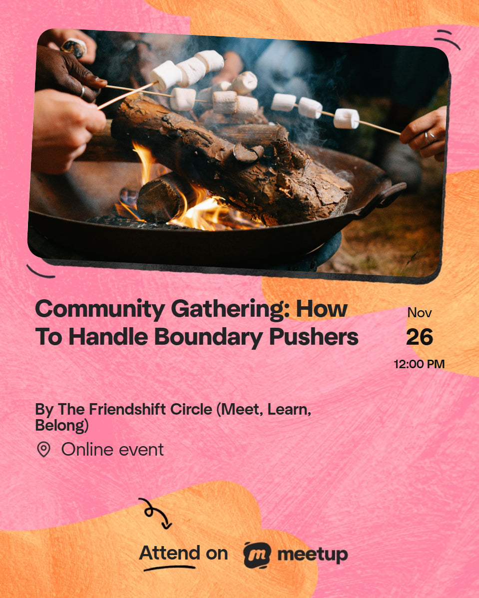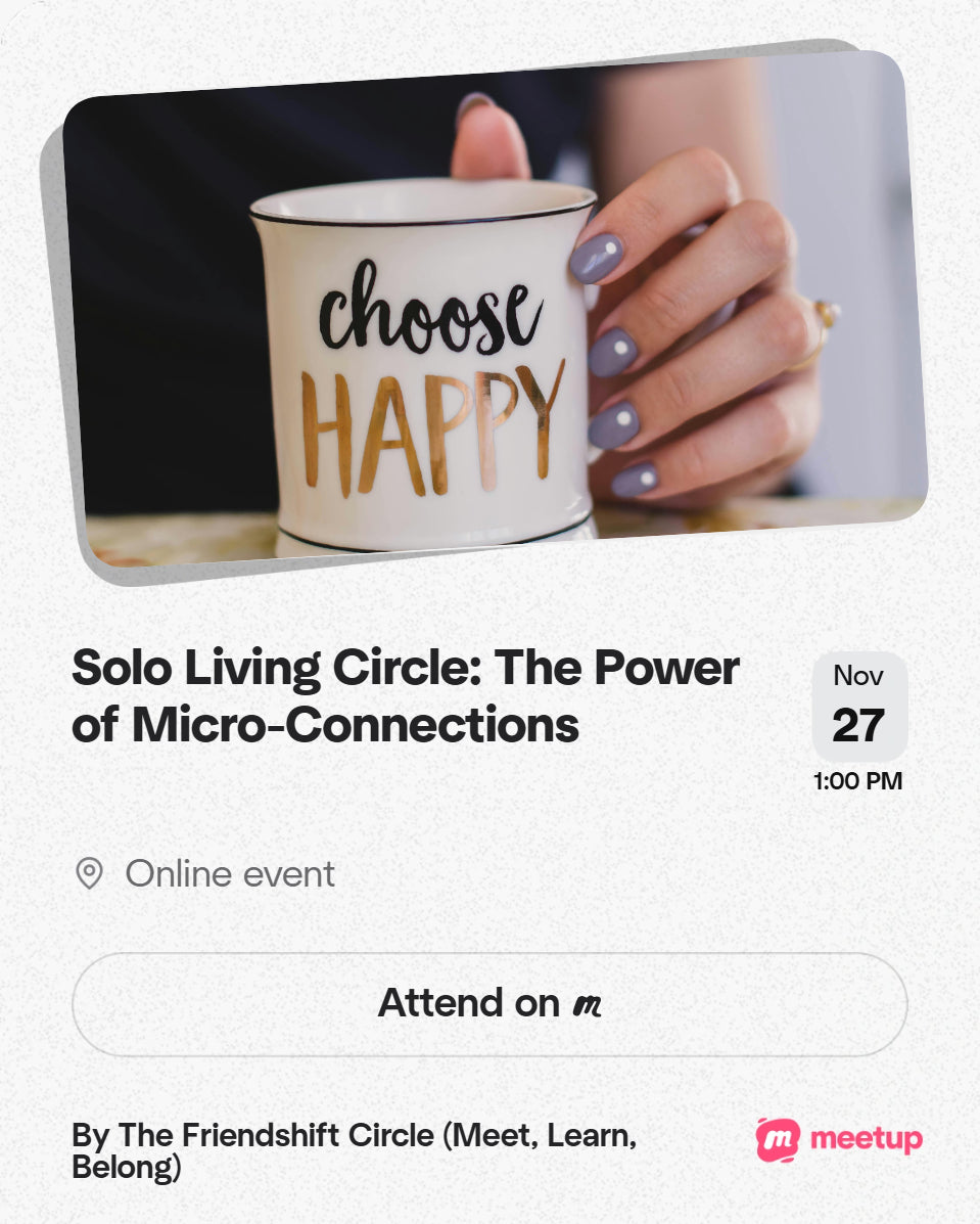 In the Friendshift Circle, individuality is celebrated. Many of our members have marched to their own drum, whether that means living solo, questioning social norms, or thinking outside the box. Here, independence is a strength, and authentic self-expression is always encouraged. Some come for new friends, others to enrich solo journeys - every story is welcome. Participate your way: lead a conversation, quietly observe, or start a one-on-one chat - as long as it's respectful, it’s all valued here.