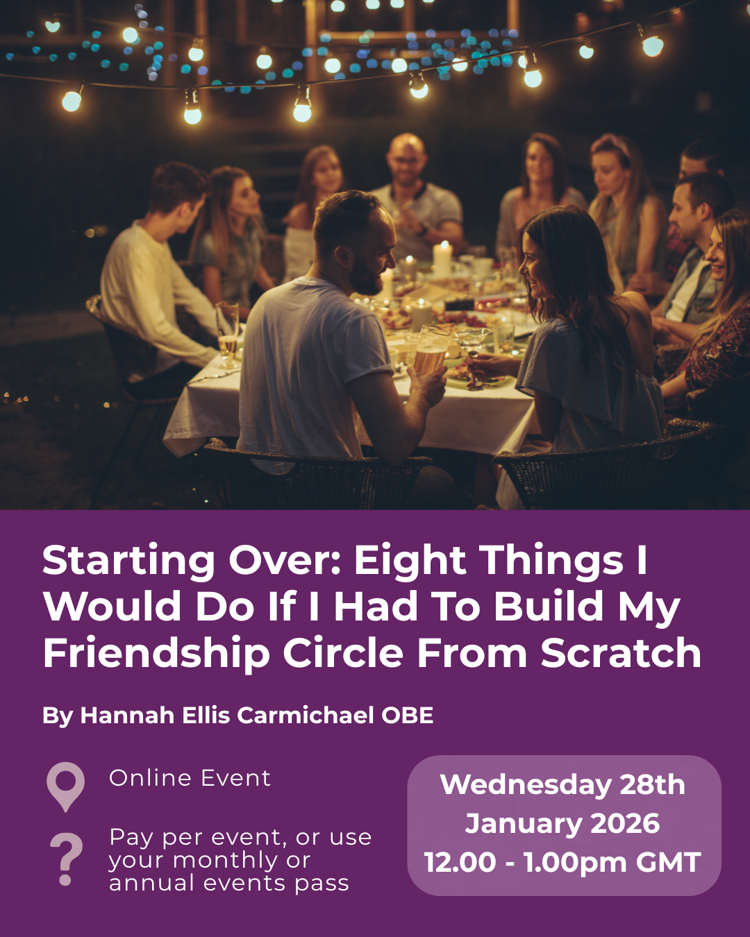 Wednesday 28th January 2026 (12.00 - 1.30pm GMT) - Starting Over: Eight Things I Would Do If I Had To Build My Friendship Circle From Scratch
